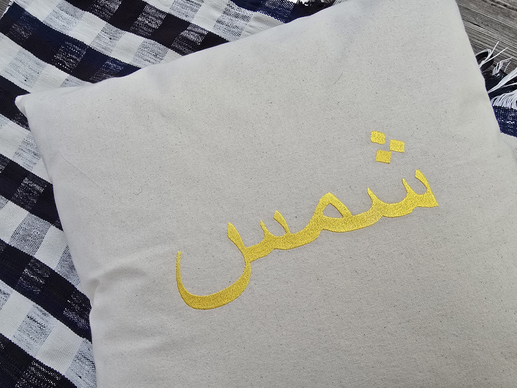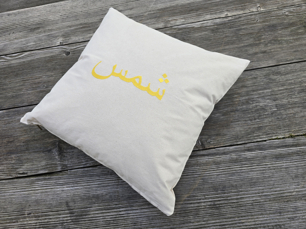 housse du coussin 50 x 50 cm (sans contenu) coton brodé „soleil“ (jaune) sur demande, le contenu du coussin peut être peut être livré avec – frais supplémentaires de CHF 10