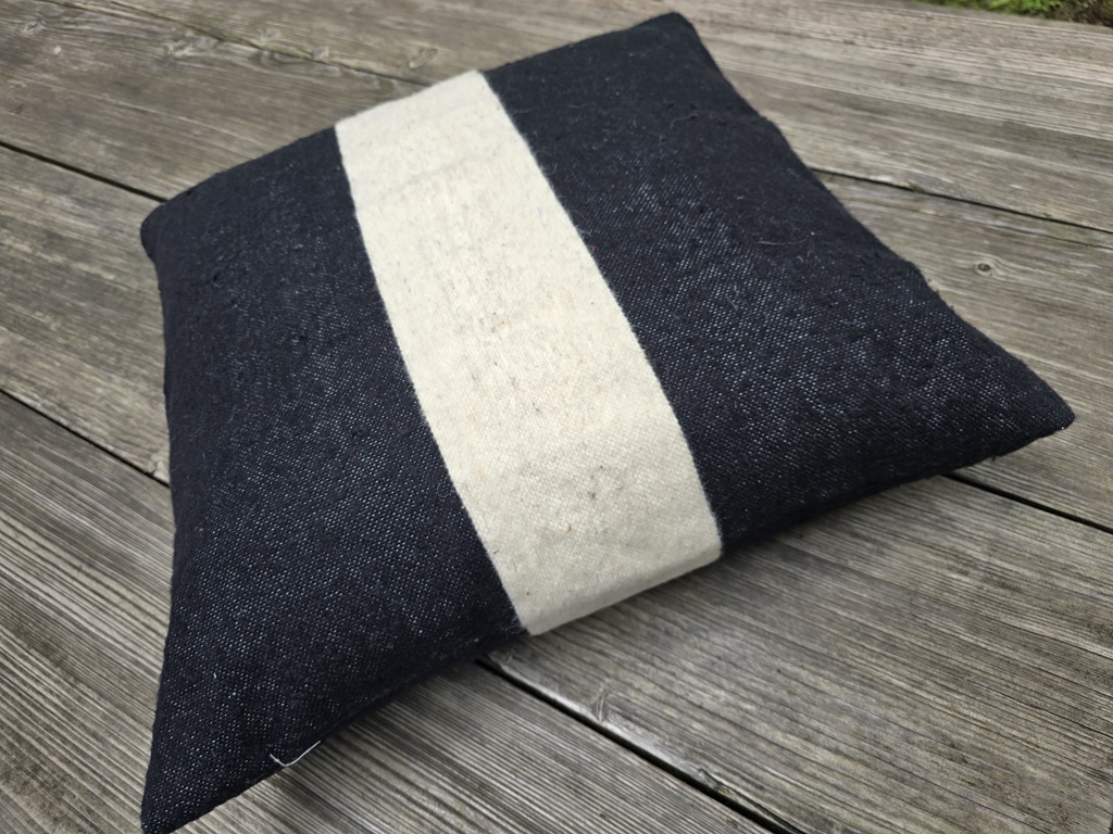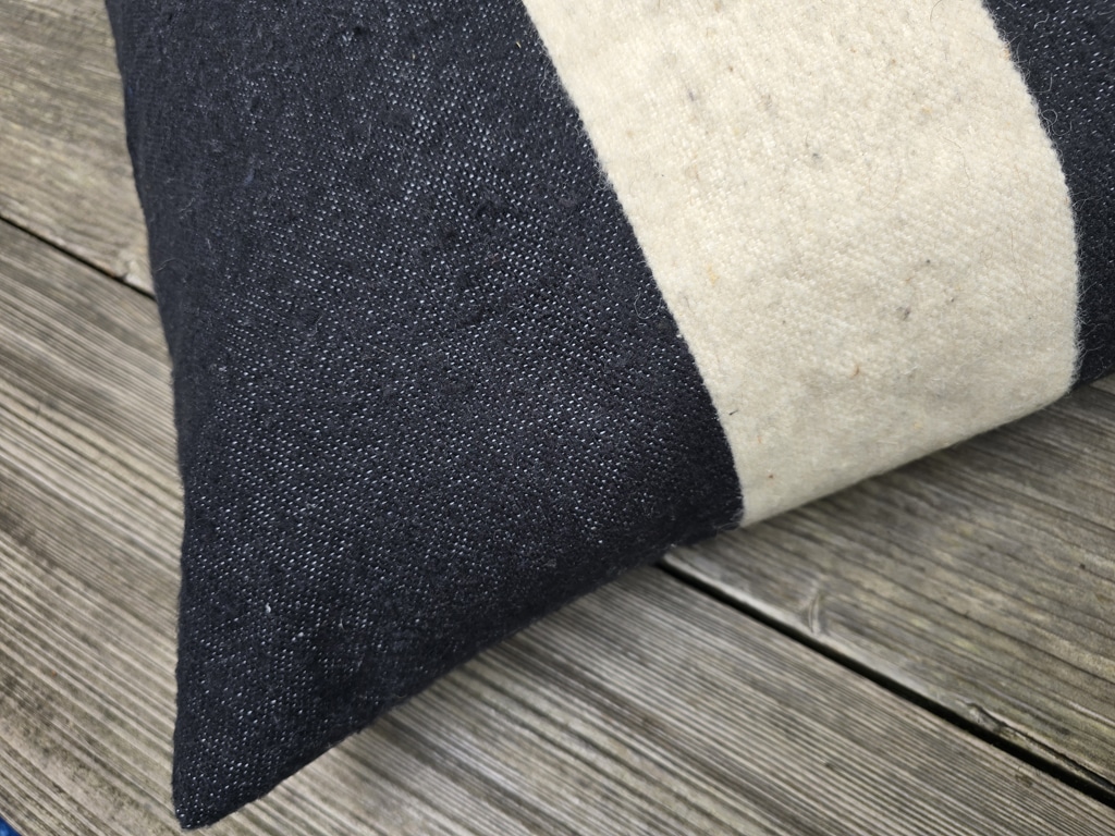 housse de coussin 50 x 50 cm coton / laine noir /écru zip