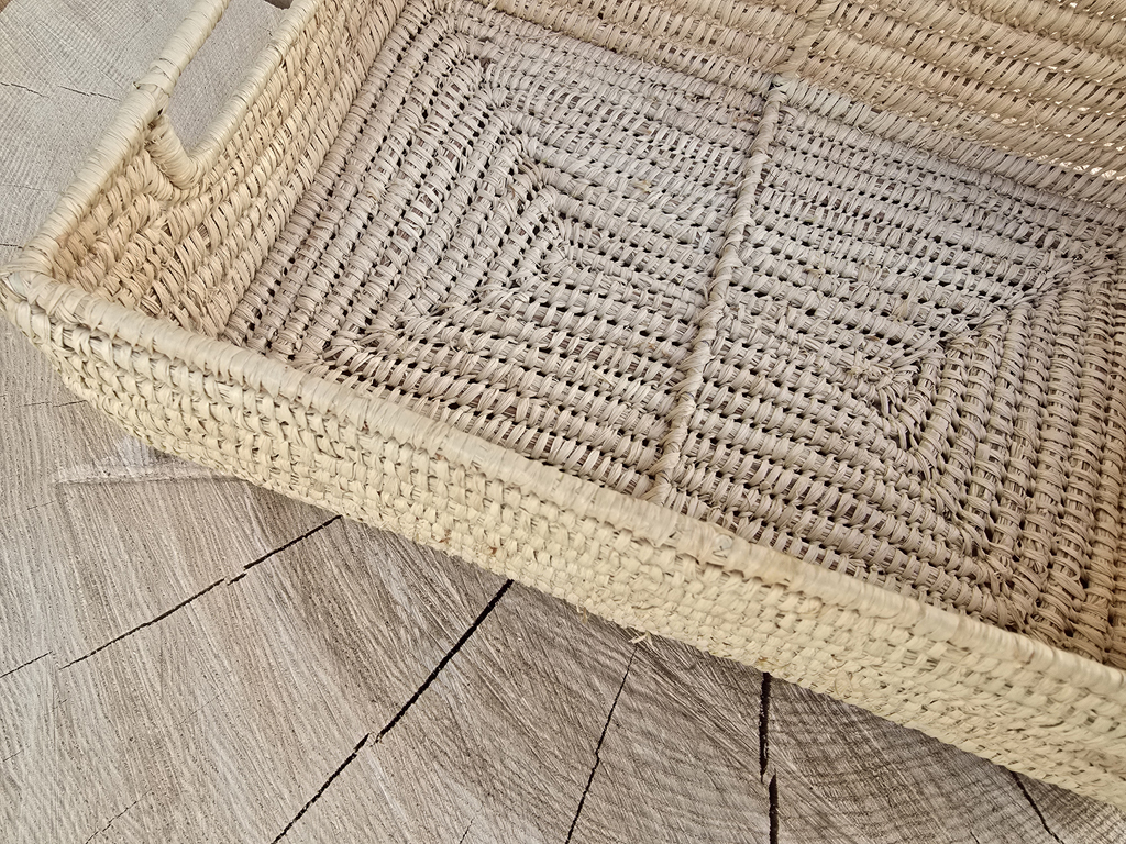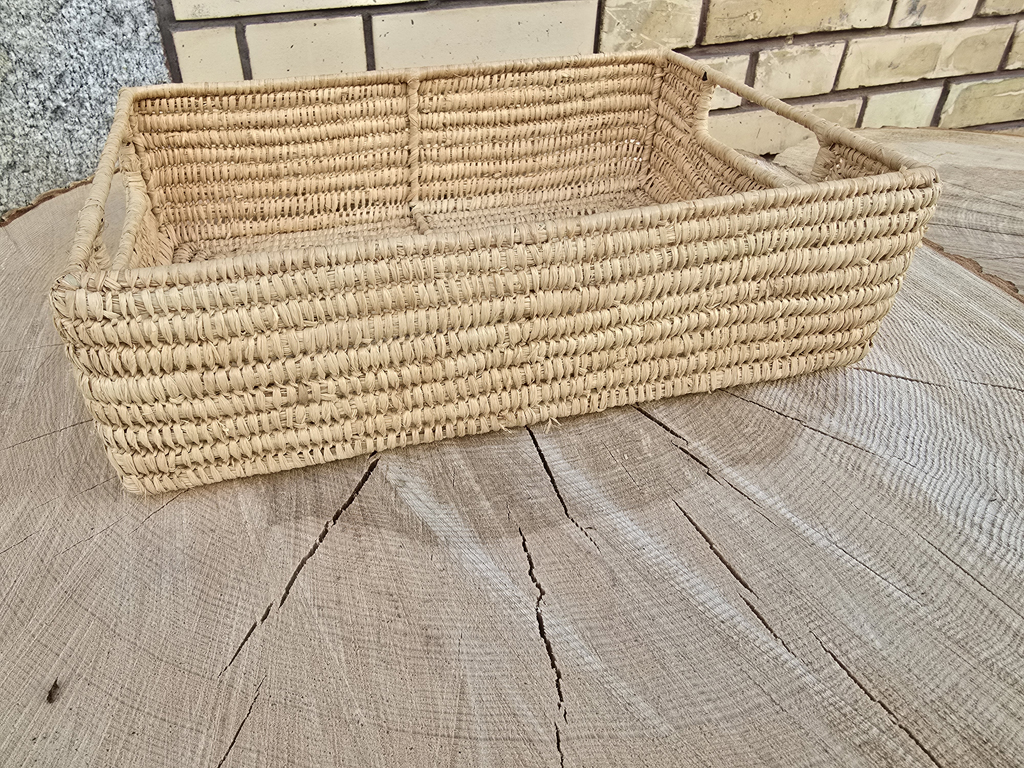 économique en Afrique. Les fibres de raphia sont obtenues à partir des feuilles de figuier, transformées localement en une multitude d’objets, comme des paniers et des cordes.