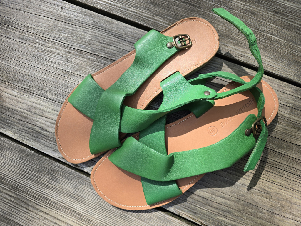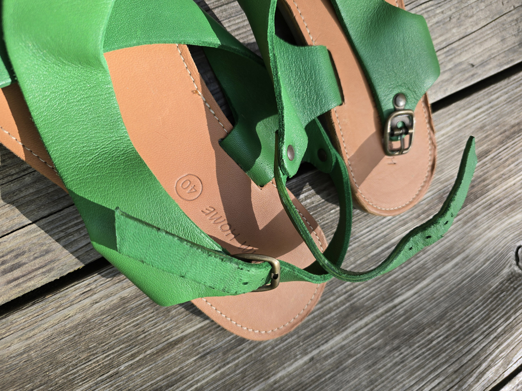 sandales en cuir vert