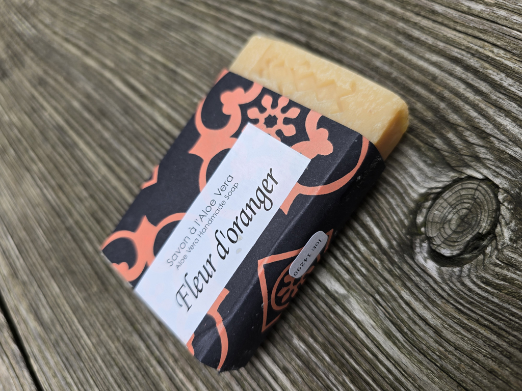 La Fleur d’oranger, fleur mythique des jardins secrets nichés au cœur des riads marocains, elle exhale son parfum tendre et apaisant. Un savon doux et délicatement parfumé, enrichi en Aloe Vera réputé pour ses vertus hydratantes.