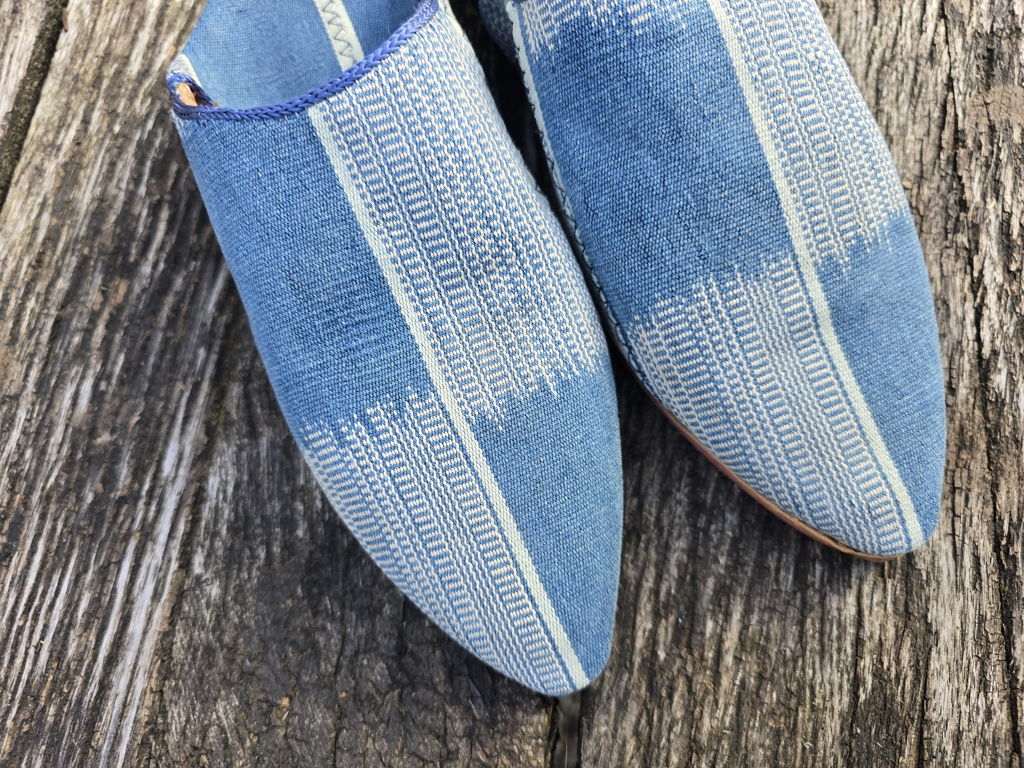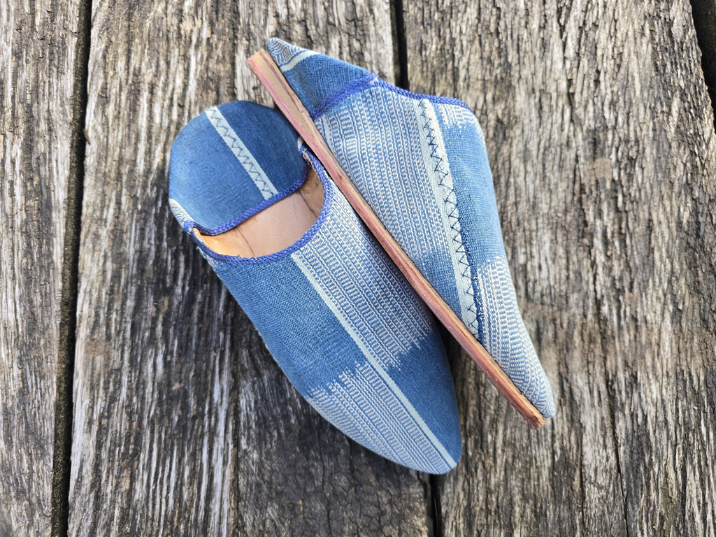 Der Stoff dieser Babouches ist ein vintage-Stoff.