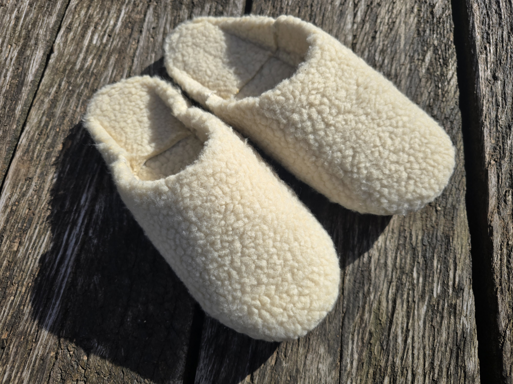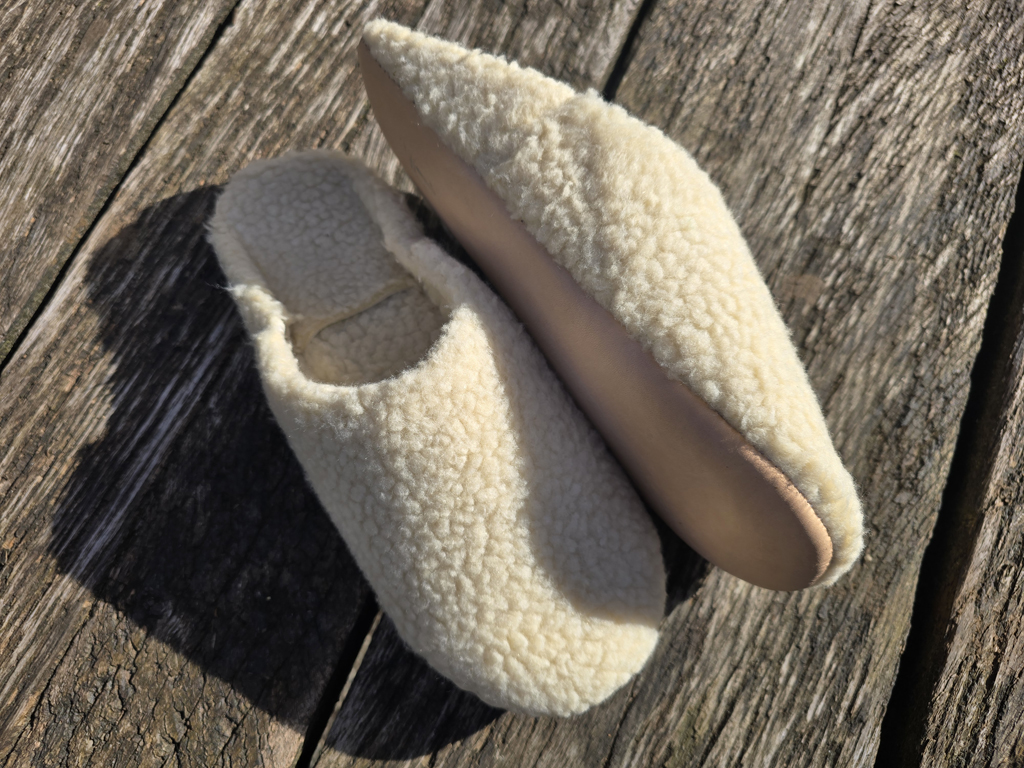 Schaffell innen/aussen, weiche Sohle