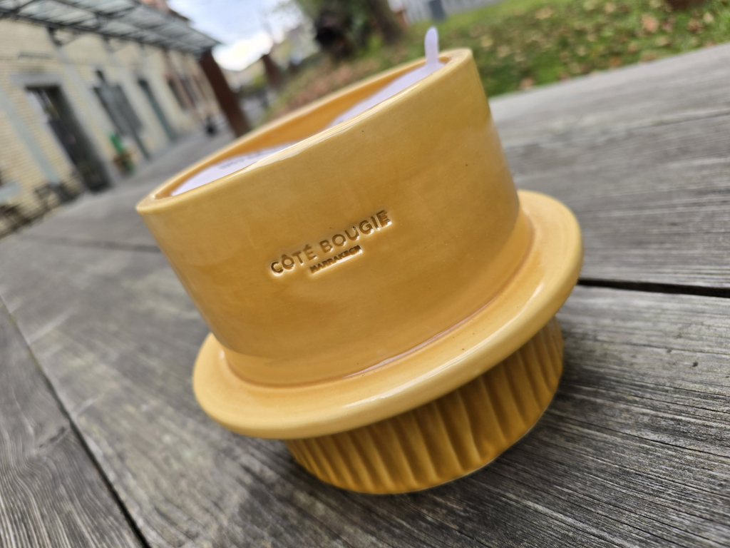 Keramikobjekt safran mit Kerze (4 Dochte)