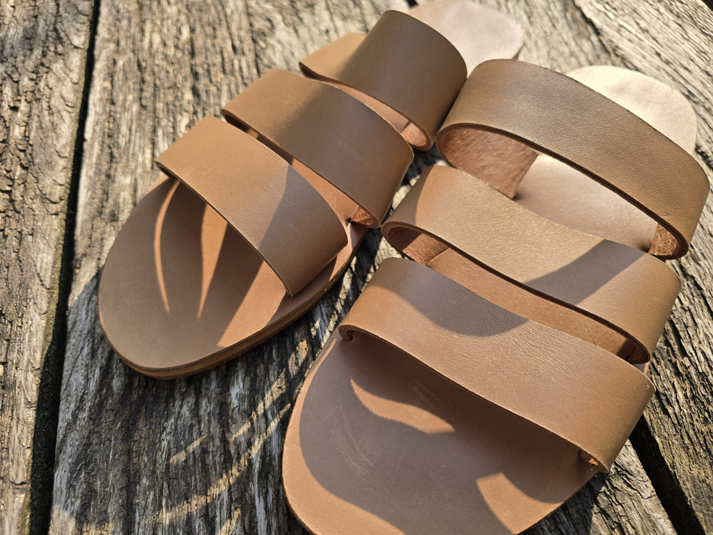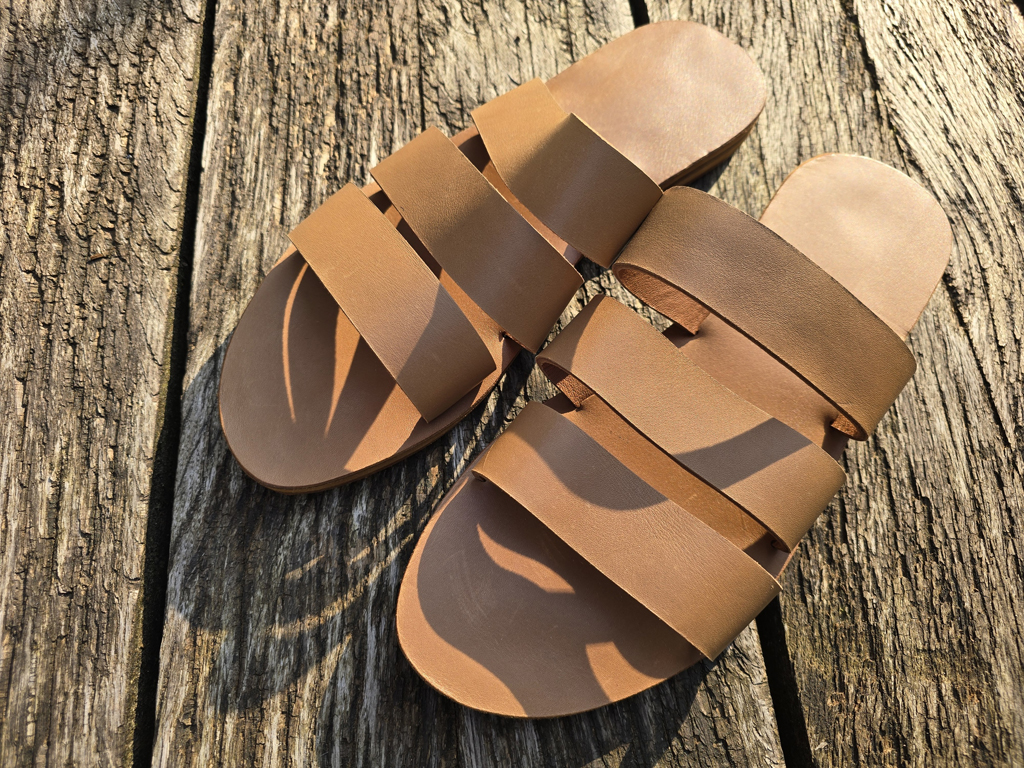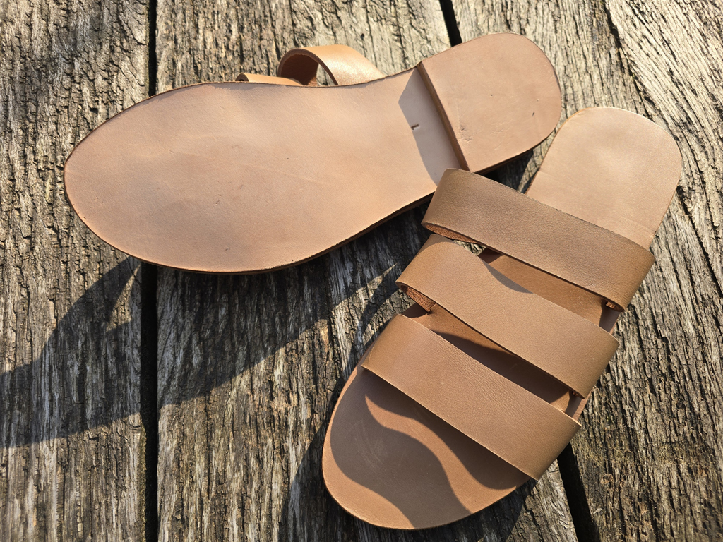 Grösse 40 Sandale mit leichtem Absatz Leder natur Sohlenlänge ca. 26 / 26.5 cm handgearbeitet und genäht