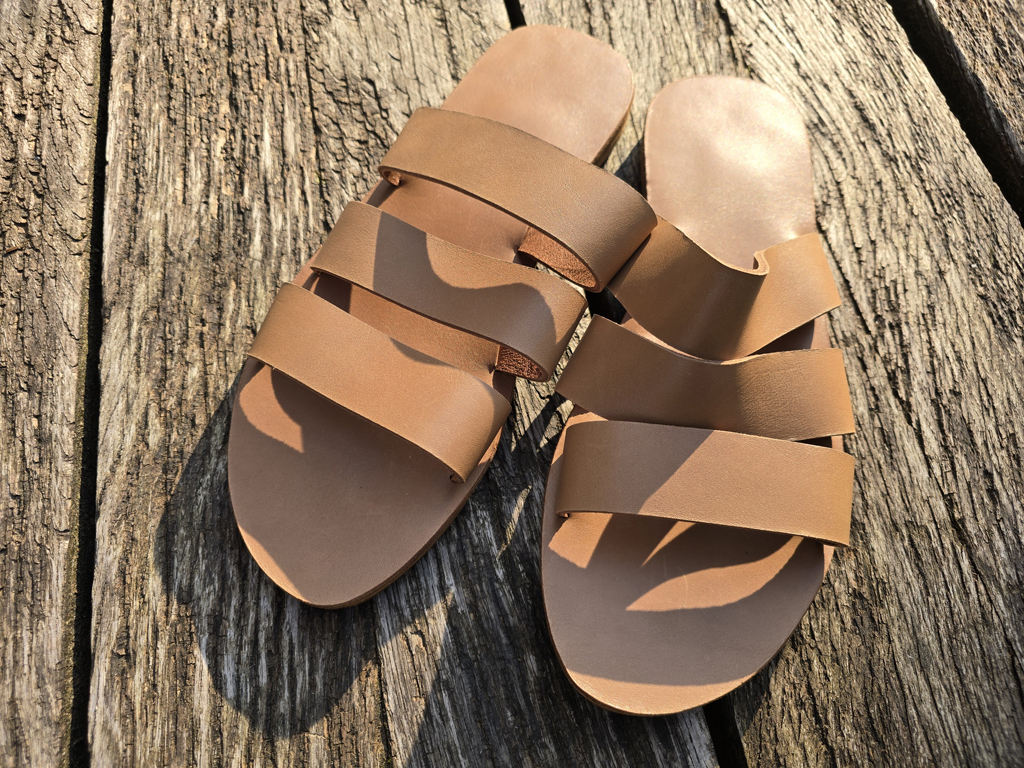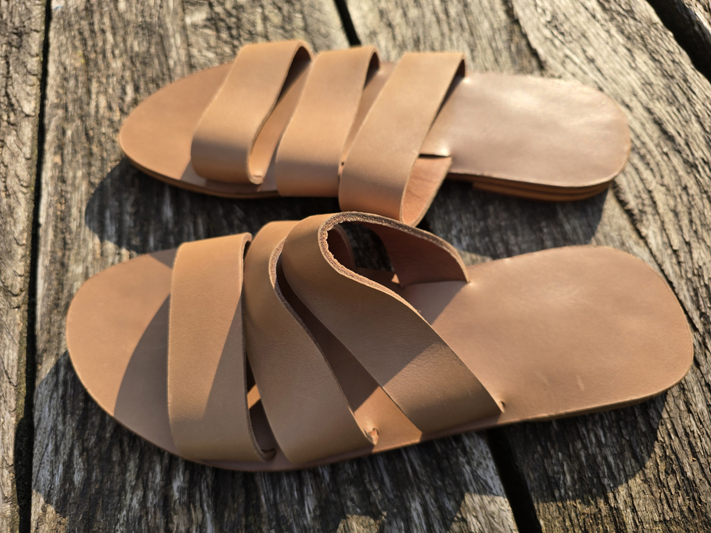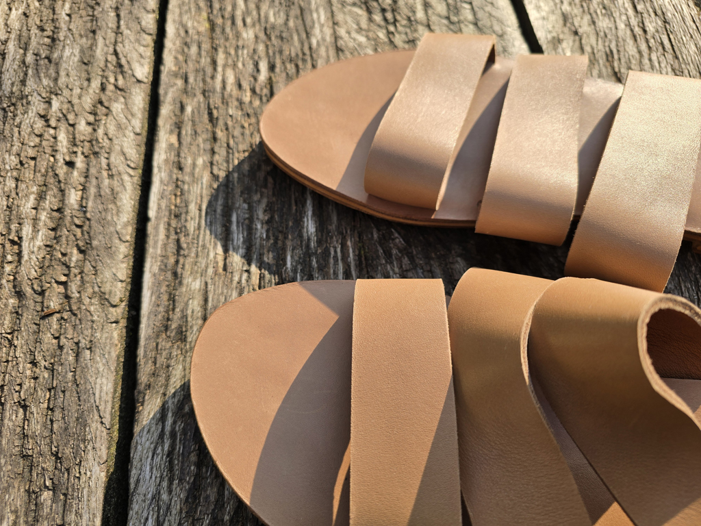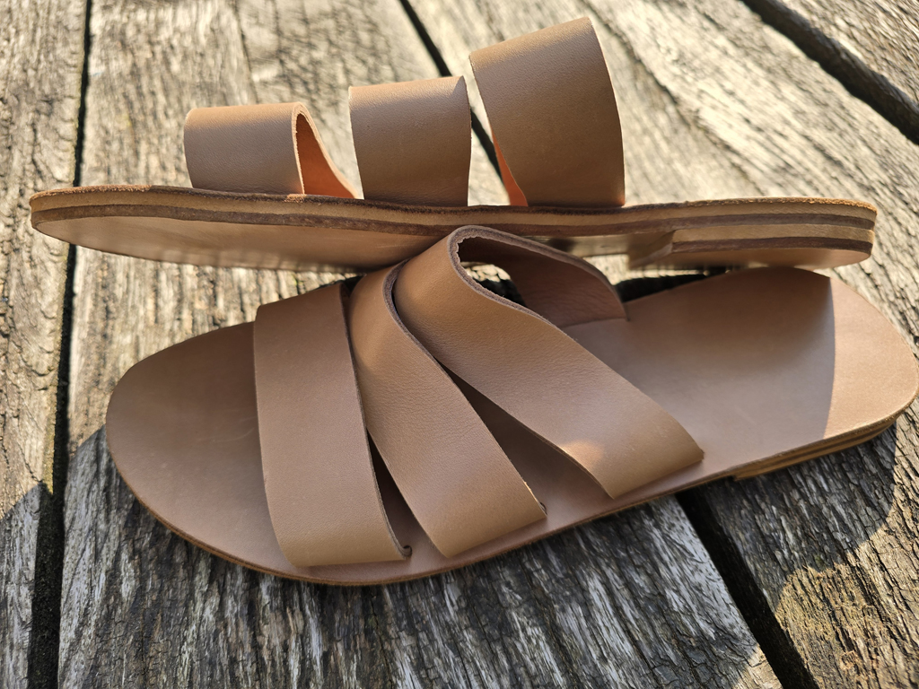 Grösse 41 Sandale mit leichtem Absatz Leder natur Sohlenlänge ca. 26.5 / 27 cm handgearbeitet und genäht